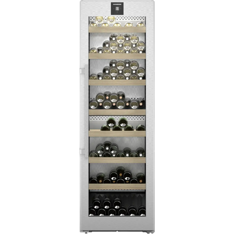 Винный шкаф Liebherr WSbsi 5252-20 относится к линейке Vinidor. Прибор вмещает до 155 бутылок типа Бордо 0,75 л и обладает габаритами 185,4 х 59,7 х 67,5 см.