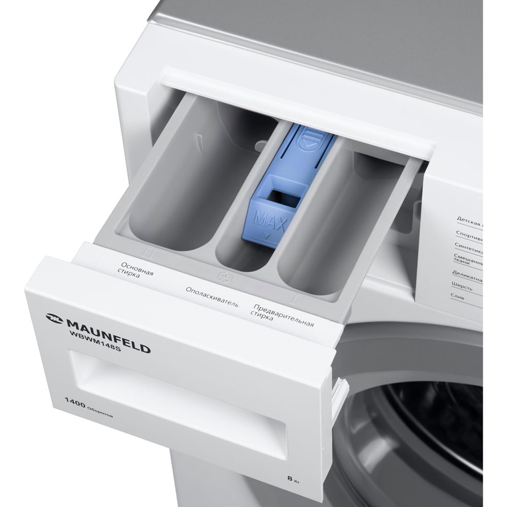 Стиральная машина Maunfeld MBWM148S отличается простым интерфейсом, выполнена в белом цвете, она лаконично подойдет к любому интерьеру. Благодаря классической фронтальной загрузке она привычна и удобна даже для тех, кто не очень разбирается в технике. Ее габариты 82.5×59.5×54 см. Управление осуществляется за счет поворотного переключателя и кнопок, что обеспечивает быстрый выбор программы и настройку специальных функций, например, можно включить самоочистку.