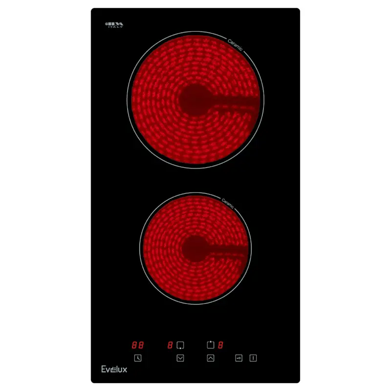 Электрическая варочная панель Evelux EV 3020 имеет две конфорки, при изготовлении которых используется технология быстрого нагрева Hi-Light. Модель имеет таймер выключения, что позволяет задавать продолжительность работы. Конфорка отключится автоматически после окончания установленного времени.