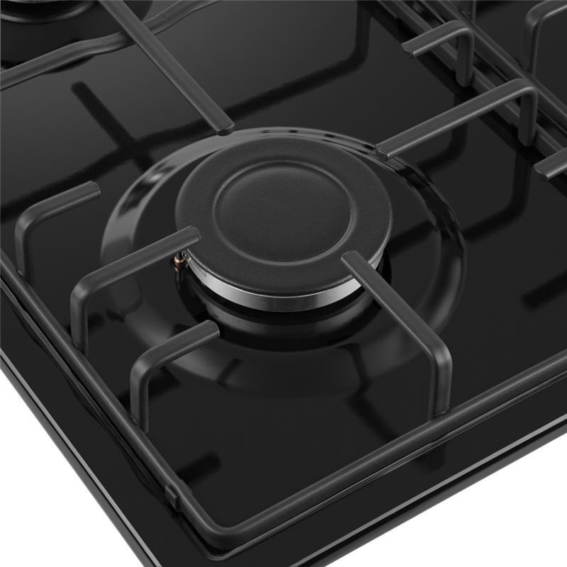 Варочная панель оснащена системой газ-контроля на всех конфорках. Эта функция автоматически перекрывает подачу газа, если пламя гаснет по причине сквозняка или выкипания жидкости. Это предотвращает утечку газа и потенциально опасные ситуации, что особенно важно в домах с детьми.