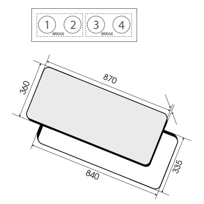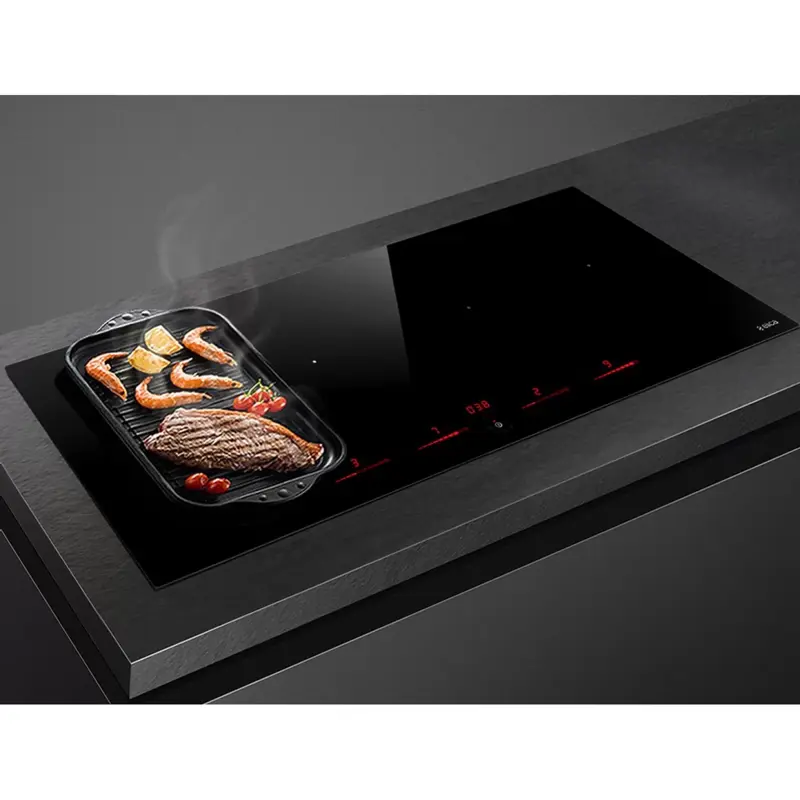 Панель оснащена двумя зонами Bridge zone, которые позволяют объединять конфорки для использования с большой посудой. Индукционный нагреватель обеспечивает быстрый и равномерный нагрев. Доступно 9 уровней мощности для точного контроля процесса приготовления.