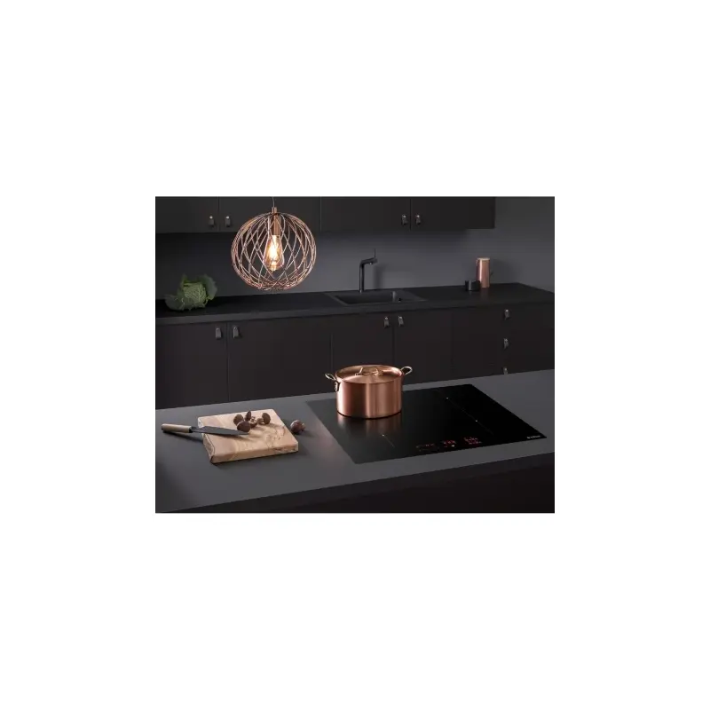 Индукционная варочная панель — это современное кухонное устройство, которое нагревает непосредственно дно посуды с помощью электромагнитного поля, минуя промежуточный нагрев поверхности. Это обеспечивает высокую скорость, безопасность и энергоэффективность в сравнении с традиционными электрическими или газовыми плитами. Модель шириной 60 см с черной стеклокерамической поверхностью и интеллектуальным управлением представляет собой компактный и мощный центр для кулинарии.