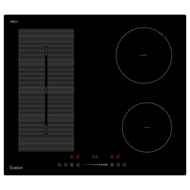 Черный цвет панели придает ей элегантный и современный вид, который гармонично впишется в любой интерьер кухни. Это делает EVELUX EHI 6045 не только функциональным, но и стильным дополнением к вашему дому.