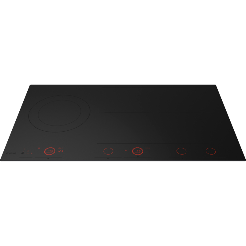 Варочная панель Asko HID925MFC имеет ширину 90 см, что позволяет разместить пять конфорок на стеклокерамической поверхности. Четыре прямоугольные зоны нагрева и одна круглая с двумя контурами обеспечивают гибкость в использовании. Это делает панель универсальной для приготовления блюд в посуде любого размера — от небольших сотейников до объемных кастрюль.