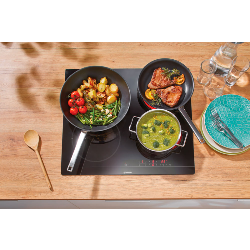 Сенсорное управление варочной панелью GORENJE ECT641BSCE позволяет легко и быстро настраивать параметры приготовления. Вы можете управлять всеми функциями одним касанием, что делает процесс приготовления пищи максимально удобным и интуитивно понятным.