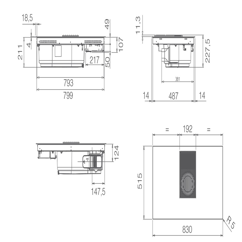 Встроенная вытяжка имеет четыре уровня мощности, что позволяет эффективно удалять пары и запахи, возникающие во время приготовления пищи. Вы можете выбрать оптимальный уровень в зависимости от интенсивности приготовления.