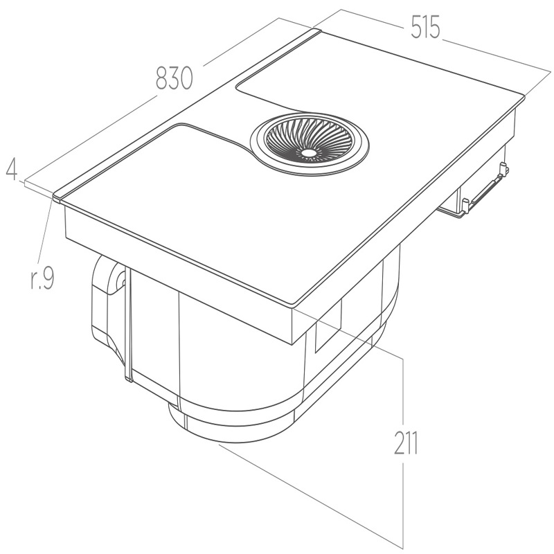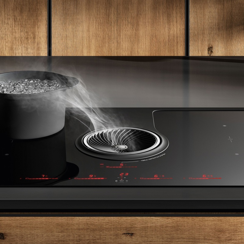 Интегрированная вытяжка обеспечивает эффективное удаление запахов и пара благодаря 9 уровням мощности. Режим рециркуляции позволяет очищать воздух без необходимости подключения к вентиляции, что удобно для помещений без вывода наружу.