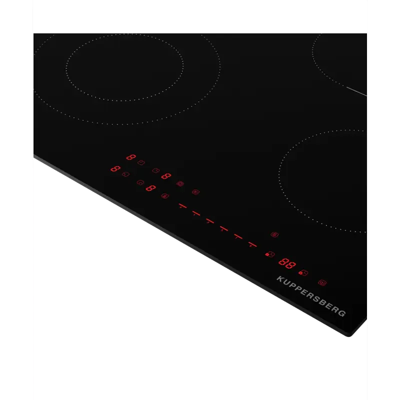 Kuppersberg ECS 624 оснащена функциями, обеспечивающими безопасность: блокировка панели управления предотвращает случайное включение, автоматическое отключение срабатывает при длительном бездействии, а защита от ошибок (например, ER03) минимизирует риски. Эти особенности делают панель идеальной для семей с детьми.