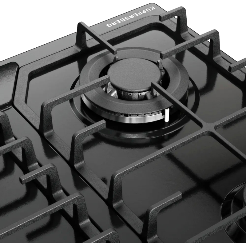 Опорой для посуды служит двухсегментная чугунная решетка. Она устойчива к длительному воздействию высоких температур, не прогибается от веса тяжелой кухонной утвари и сохранит свою функциональность в течение всего срока службы панели.