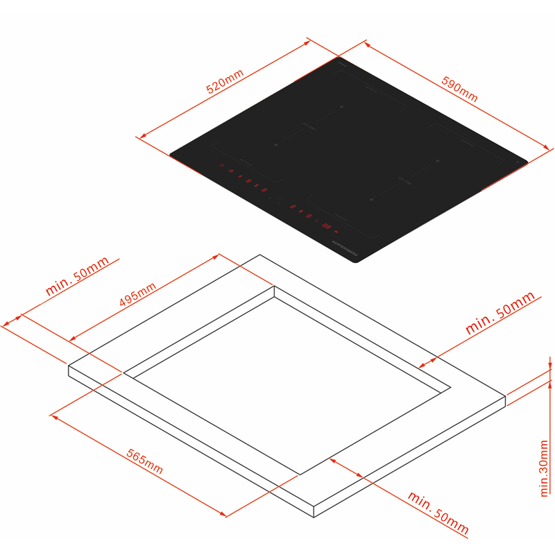 Размеры для встраивания (ШхГ): 560 × 490 мм