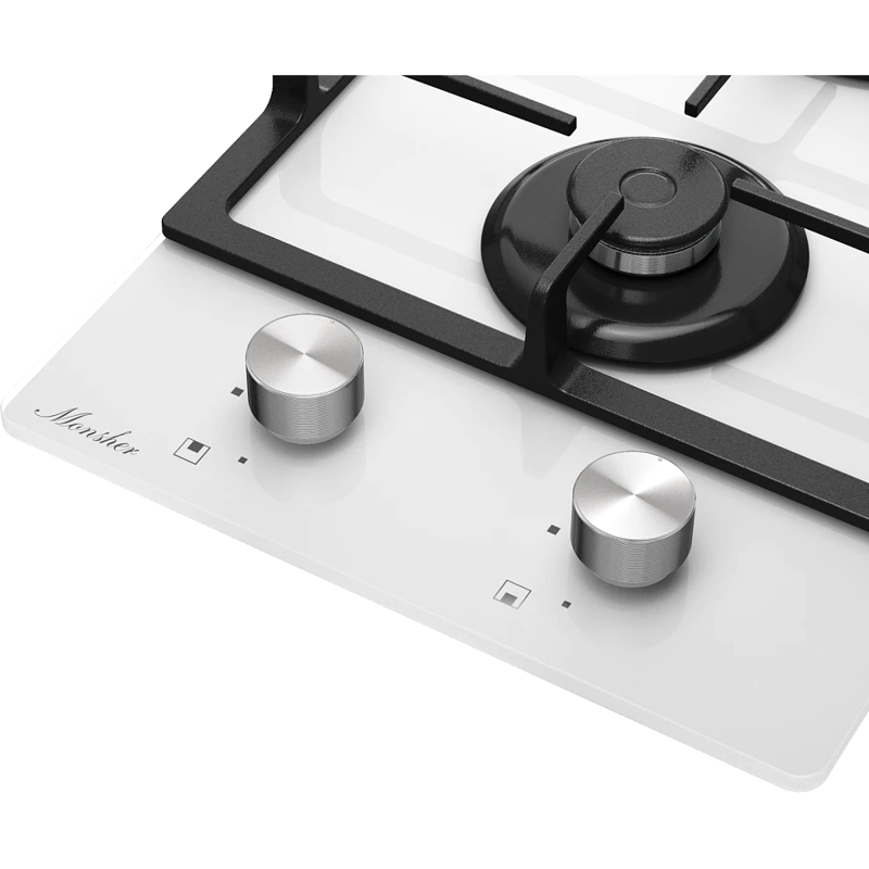 Газовая варочная панель Monsher MGG 33 Blanc из коллекции High-Tech — модель типа «Домино» — ширина составляет всего 30 см. Устройство подойдет для небольших кухонь и тех, кому для приготовления пищи достаточно двух конфорок. Также несколько подобных панелей можно объединить и создать индивидуальную комбинацию под собственные потребности.