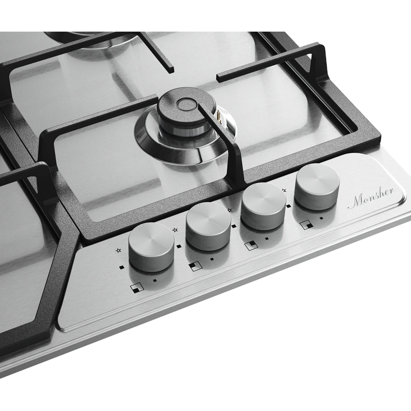 Газовая варочная панель Monsher MSG 63 Acier из коллекции High-Tech — современная модель, которую отличает стильный лаконичный дизайн, удобство и безопасность использования. Предусмотрена система «Газ-контроль»: в случае угасания пламени встроенные предохранители моментально прервут подачу газа и предотвратят утечку.