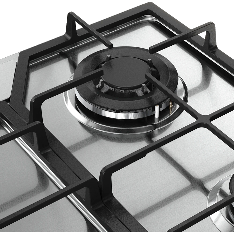 Передняя правая конфорка малая — имеет мощность 1000 Вт, передняя левая — усиленная на 3400 Вт. Обе задние стандартные — по 1750 Вт. Разная мощность и диаметр дают возможность готовить в посуде разного размера: от миниатюрной турки до больших сковород и кастрюль. Используются высококачественные и долговечные горелки Chinese SABAF.