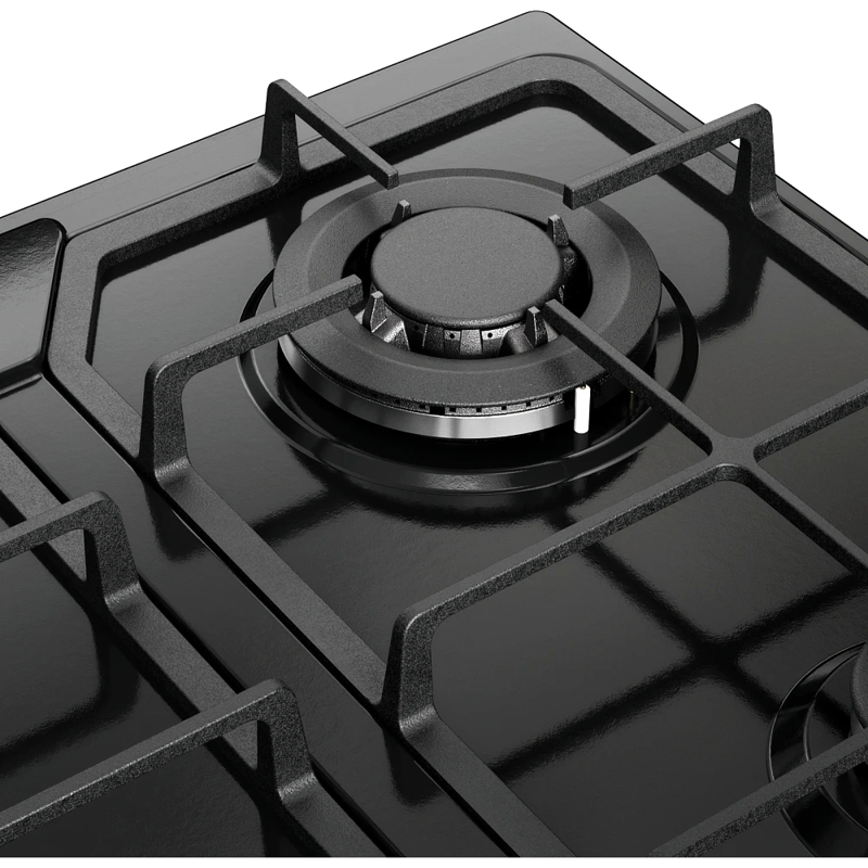 Передняя правая конфорка малая — имеет мощность 1000 Вт, передняя левая — усиленная на 3400 Вт. Обе задние стандартные — по 1750 Вт. Разная мощность и диаметр дают возможность готовить в посуде разного размера: от миниатюрной турки до больших сковород и кастрюль. Используются высококачественные и долговечные горелки Chinese SABAF.