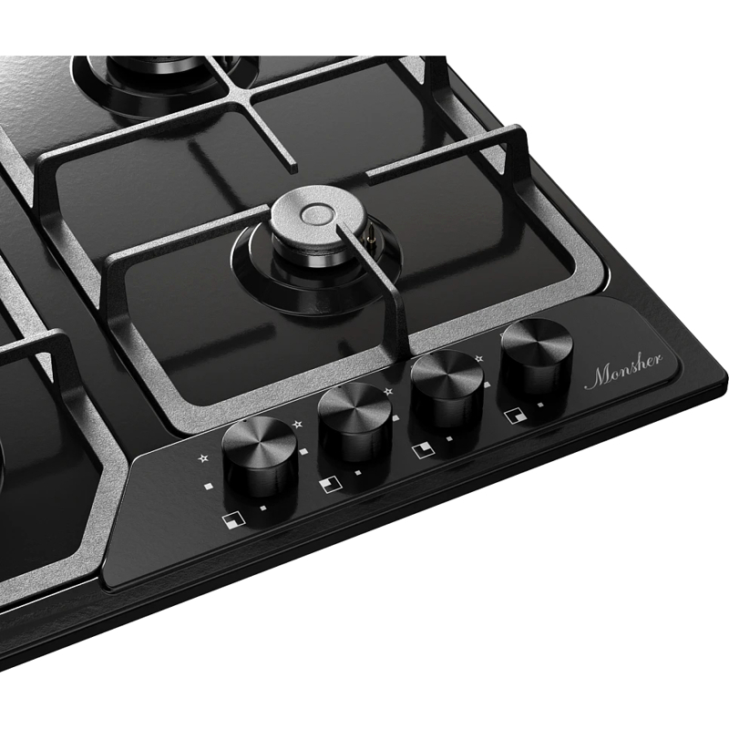 Газовая варочная панель Monsher MSG 63 Noir из коллекции High-Tech — современная модель, которую отличает стильный лаконичный дизайн, удобство и безопасность использования. Предусмотрена система «Газ-контроль»: в случае угасания пламени встроенные предохранители моментально прервут подачу газа и предотвратят утечку.