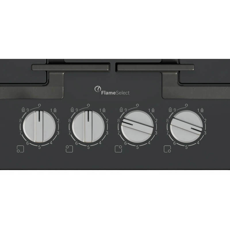 Функциональная часть ориентирована на точный контроль нагрева: четыре конфорки с различной отдачей позволяют быстро подобрать оптимальную силу пламени для разных задач - передняя и задняя левая дают по 1.75 кВт, передняя правая - 1 кВт, а задняя правая мощнее остальных и обеспечивает 3 кВт, суммарная мощность системы составляет 7.5 кВт. Технология FlameSelect реализована для плавного и предсказуемого перехода между четырьмя ступенями мощности, что удобно при приготовлении требовательных блюд и при длительной термообработке. Наличие автоматического электроподжига исключает необходимость использования внешних источников огня, а газ-контроль в виде термоэлектрической защиты повышает безопасность, перекрывая подачу при случайном погасании пламенного факела.