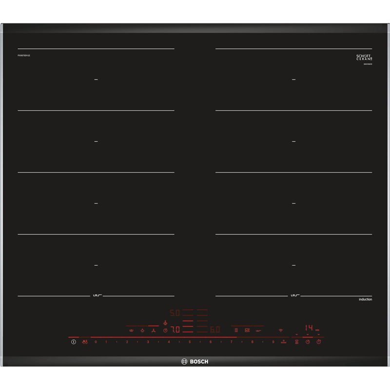 Индукционная варочная панель Bosch PXX675DV1E Serie 8 - это высокотехнологичное устройство для приготовления пищи с четырьмя конфорками. Особенностью данной модели являются две зоны расширения FlexInduction, которые позволяют использовать посуду любого размера и формы.