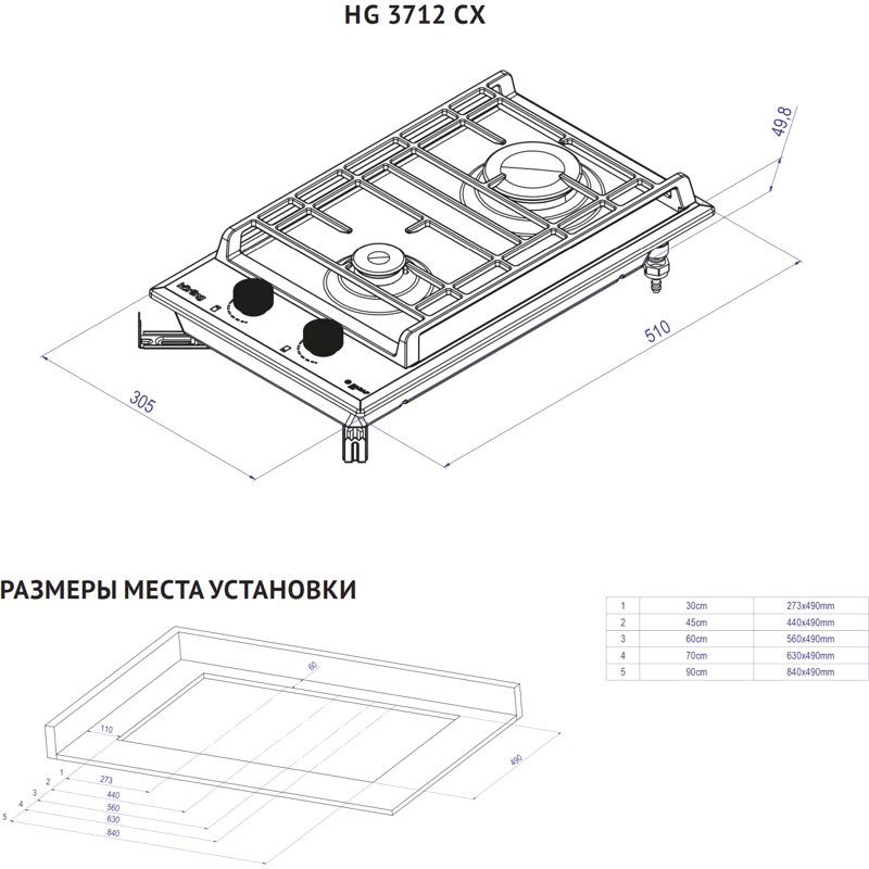 Стандартный размер устройства, предназначенный для встраивания в кухонную столешницу, составляет 72 x 51 см. Дизайн устройства выполнен в стильном чёрном цвете, что делает его универсальным и гармонично вписывающимся в любой интерьер.