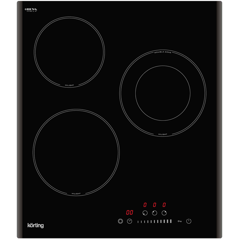 Зоны нагрева Korting оборудованы современными нагревательными элементами HiLight. В этих конфорках в качестве нагревательного элемента применяется уложенная змейкой лента из высокоомного сплава, конфорка достигает установленной рабочей температуры буквально за считанные секунды, позволяет плавно регулировать мощность, излучаемое тепло очень равномерно распределяется по всей рабочей зоне.