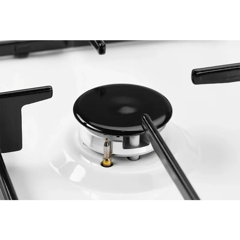 Поверхность панели и решетка-опора для посуды покрыты гладкой эмалью — прочным, устойчивым к царапинам материалом, который легко очищается от брызг жира и частиц пищи. За безопасность отвечает система контроля газа: при случайном угасании пламени предохранители предотвращают утечку. В комплект включен набор форсунок — при необходимости возможно использование баллонного газа.