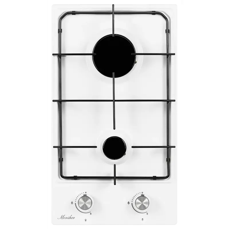 Газовая варочная панель Monsher MSG 36 Blanc из коллекции High-Tech — модель типа «Домино» — ширина составляет всего 29 см. Устройство подойдет для небольших кухонь и тех, кому для приготовления пищи достаточно двух конфорок. Также несколько подобных панелей можно объединить и создать индивидуальную комбинацию под собственные потребности.