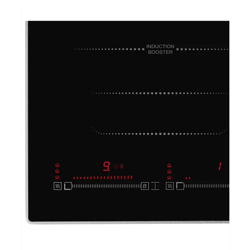Прибор оснащен инновационным слайдерным сенсорным блоком управления, позволяющим регулировать мощность плавным движением пальца без многократных нажатий. Девять уровней нагрева обеспечивают точный контроль температуры для разных блюд — от томления до интенсивного кипячения. Встроенный таймер автоматически отключает конфорки, а пять цифровых дисплеев отображают текущие настройки и остаточное тепло для каждой зоны, исключая риск ожогов.