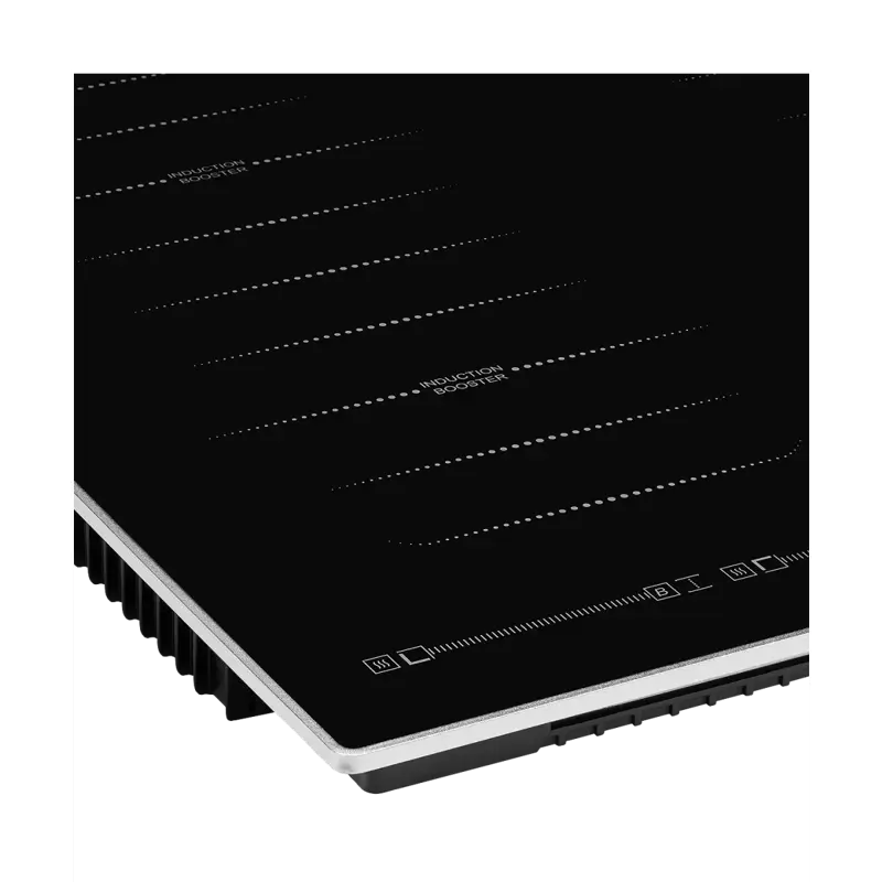 Прибор оснащен инновационным слайдерным сенсорным блоком управления, позволяющим регулировать мощность плавным движением пальца без многократных нажатий. Девять уровней нагрева обеспечивают точный контроль температуры для разных блюд — от томления до интенсивного кипячения. Встроенный таймер автоматически отключает конфорки, а пять цифровых дисплеев отображают текущие настройки и остаточное тепло для каждой зоны, исключая риск ожогов.