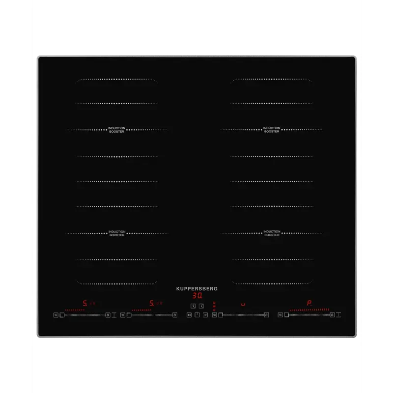 Черная стеклокерамическая панель Kuppersberg ICS 645 F в металлической рамке сочетает элегантный дизайн с передовыми технологиями. Эта индукционная модель с четырьмя конфорками подходит для любых современных кухонь, обеспечивая точный нагрев и энергоэффективность. Ее ключевые преимущества — безопасность, простота управления и расширенные функции для профессиональной готовки.
