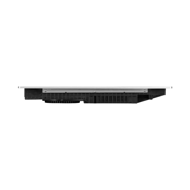 Металлическая рамка защищает кромки от сколов, а гладкая поверхность легко очищается от загрязнений без абразивных средств. Компактные габариты (59,5×52,5×6,5 см) и ниша для встраивания 56×48,5 см обеспечивают монтаж даже в столешницы ограниченного размера. При подключении к сети 220–240 В панель потребляет до 7,4 кВт, сочетая высокую производительность с высоким классом энергоэффективности (А).