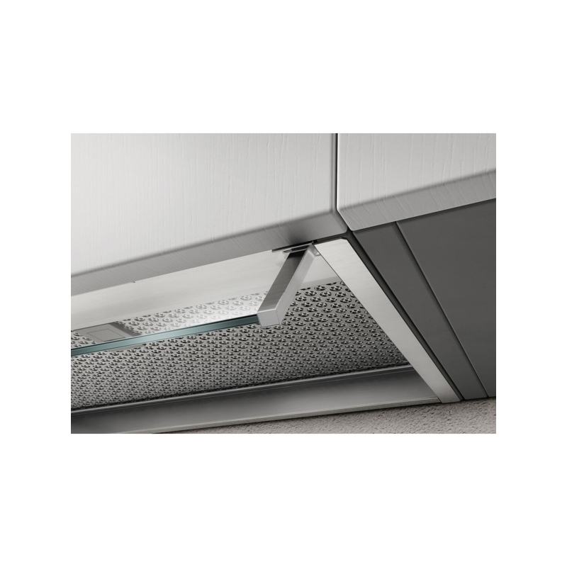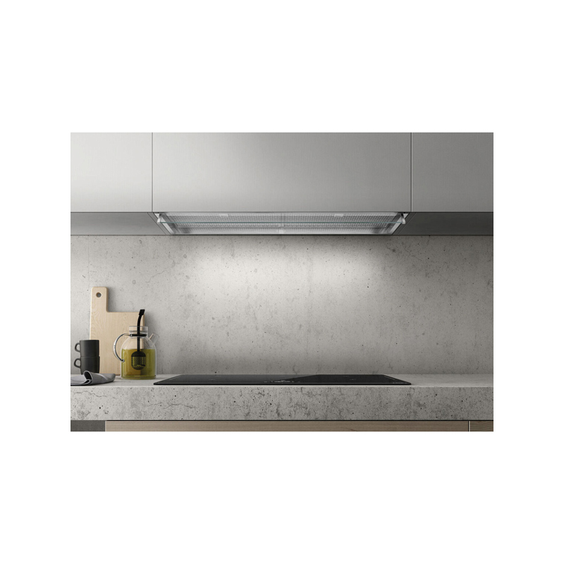Вытяжка Elica BOXIN ADVANCE IX/A/90 - умелый и надежный помощник для вашего дома. Монтируется в подвесной шкаф, так что прибор подходит для любого дизайна кухни. Вы будете видеть только небольшой фрагмент модели серебристого цвета. Устройство изготовлено в Италии. На одной стороне встроен козырек - он убережет поверхность столешниц и варочную панель от падающих капель. Также благодаря этой детали от пара, идущего снизу, не пострадают кухонные шкафы. При желании можно поставить модель и на стену при помощи специального крепежа в комплекте. Уровень шума от изделия относительно невысокий, от 50 до 64 дБ.