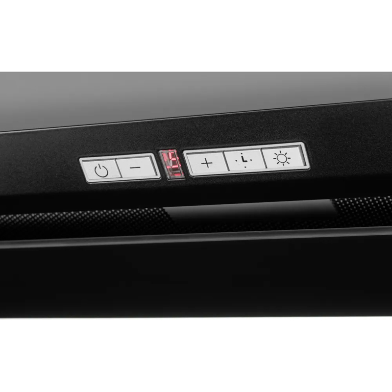 Встраиваемая вытяжка Kuppersberg Intro 70 Black из коллекции High-Tech может работать в режиме отвода и рециркуляции воздуха, производительность достигает 1500 м³/ч и 1000 м³/ч соответственно. Для максимальной эффективности модель рекомендуется использовать в помещениях площадью до 40 м² — удобный вариант для больших кухонь, совмещенных со столовой или гостиной, а также квартир-студий.