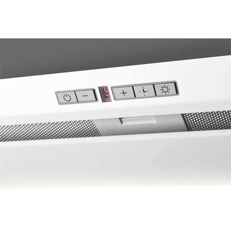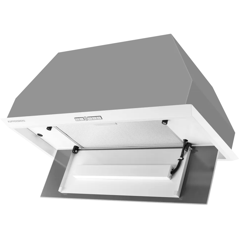 Встраиваемая вытяжка Kuppersberg Intro 70 White из коллекции High-Tech может работать в режиме отвода и рециркуляции воздуха, производительность достигает 1500 м³/ч и 1000 м³/ч соответственно. Для максимальной эффективности модель рекомендуется использовать в помещениях площадью до 40 м² — удобный вариант для больших кухонь, совмещенных со столовой или гостиной, а также квартир-студий.