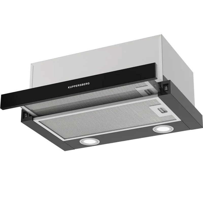 Kuppersberg SLIMHIT 50 BG – это современная, компактная и функциональная встраиваемая телескопическая вытяжка в стильном сочетании черного и серого цветов. Она сочетает в себе высокую производительность, удобство использования, относительно тихую работу и современный дизайн. Эта модель станет отличным выбором для тех, кто ищет эффективную и надежную вытяжку для небольшой кухни, а также ценит современный и элегантный стиль.