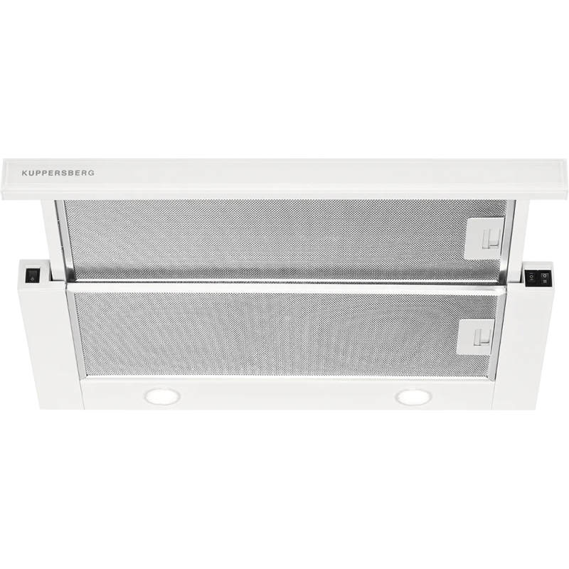 Вытяжка имеет компактные габариты 55.2x25.5x28 см, что позволяет легко встроить её даже в небольшие кухонные шкафы. Компактные размеры делают её идеальным выбором для городских квартир или кухонь с ограниченным пространством, где важна экономия места.