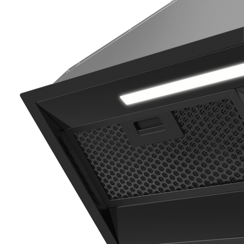 Электронное управление позволяет включить освещение и выбрать одну их 3-х скоростей работы - две стандартные и одна турбо (для быстрой очистки воздуха в экстренных случаях, например, если что-то пригорело). Освещение рабочей поверхности обеспечивается LED-лампой 3,5 Вт .
