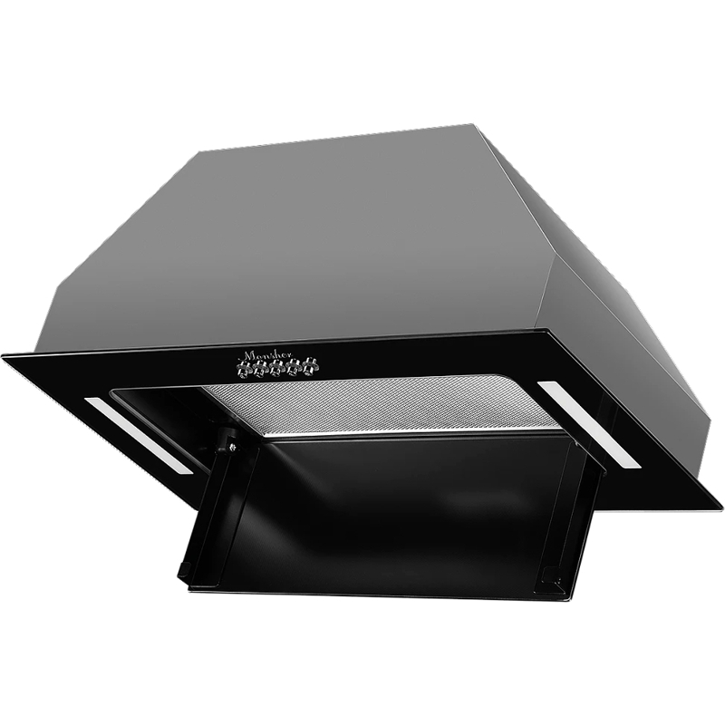 Встраиваемая вытяжка Monsher Ales 60 Noir монтируется в шкаф, снаружи остается только лаконичная черная панель с элементами управления, что позволяет вписать эту модель в интерьер практически в любом стиле. Ширина устройства составляет 52,4 см, высота — 19,6 см, а глубина — 28,5 см.