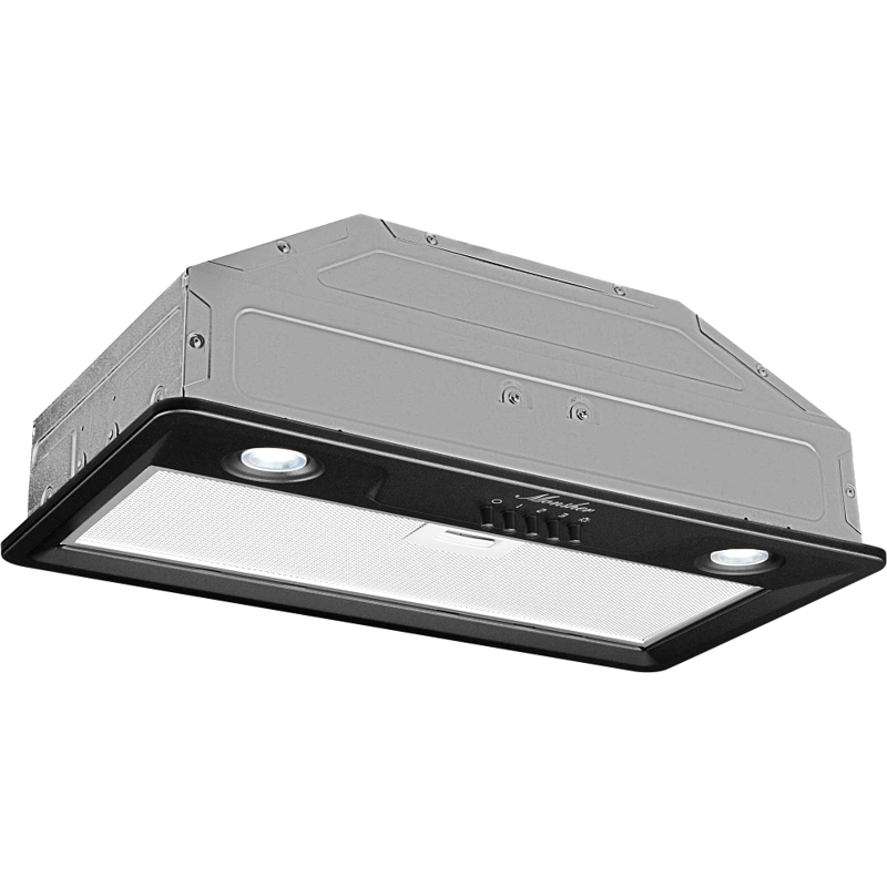 Встраиваемая вытяжка Monsher Inhit 60 Noir монтируется в шкаф, снаружи остается только лаконичная панель с элементами управления, что позволяет вписать эту модель в интерьер практически в любом стиле. Ширина устройства составляет 52,5 см, высота — 20,3 см, а глубина — 27,5 см.