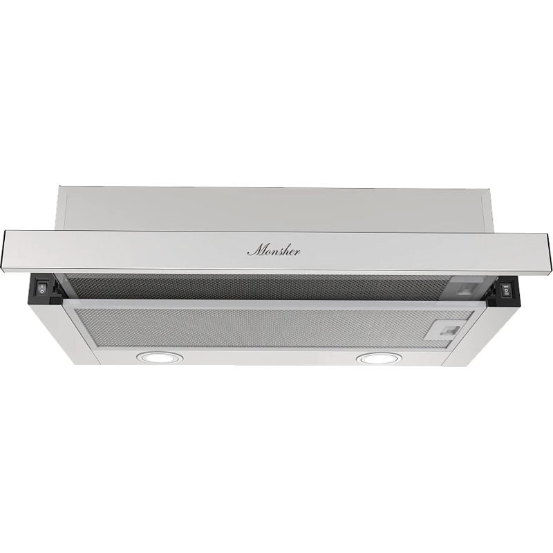 MONSHER Laura 60 Acier - это современная, компактная и тихая встраиваемая телескопическая вытяжка, которая станет отличным выбором для любой кухни. Она сочетает в себе эффективную очистку воздуха, удобство использования, низкий уровень шума и стильный дизайн в серебристом цвете. Эта модель особенно подойдет тем, кто ценит тишину и комфорт во время приготовления пищи.