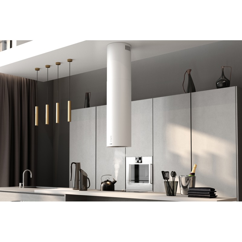 - Стильный дизайн: белый цвет вытяжки придает кухне изысканный и современный вид, подчеркивая ее стиль и элегантность.