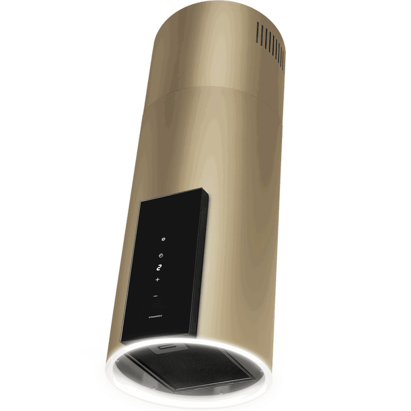 Корпус выполнен из высококачественных материалов в благородном золотом цвете. Компактные размеры и современный дизайн позволяют гармонично вписать вытяжку в любой кухонный интерьер.