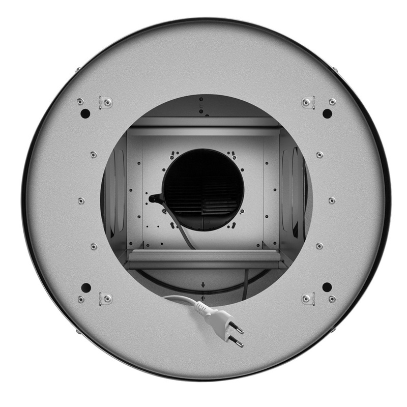 Корпус вытяжки изготовлен из нержавеющей стали INOX, которая отличается высокой прочностью, долговечностью, устойчивостью к коррозии и лёгкостью в уходе.