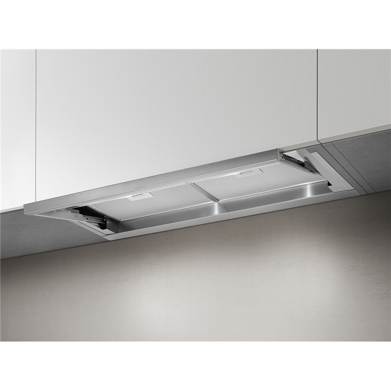 Вытяжка Lever характеризуется очень простым дизайном, который позволяет ей полностью скрываться в подвесных шкафах, гарантируя сохранение линейного стиля кухни. Будучи открытой, она отводит пары благодаря стеклянному козырьку, который, вместе с ее высокопроизводительным мотором, обеспечивает оптимальное улавливание паров, не давая им долетать до навесных шкафов. Вытяжка Lever оборудована микропереключателем, который позволяет включать или выключать подсветку и отсос простым открытием или закрытием переднего козырька.