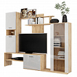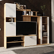 В гостиной "Данко" предусмотрено множество мест для хранения. В комплект входят тумба под ТВ, шкаф напольный с полками, шкаф-пенал, ниша/тумба для ТВ и полки. Это позволяет разместить все необходимые вещи и аксессуары.