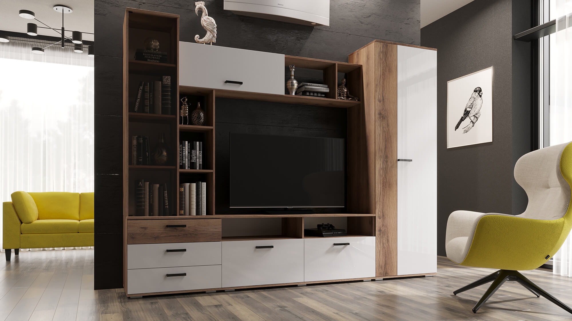 Цвет: Дуб делано/Белый глянец
