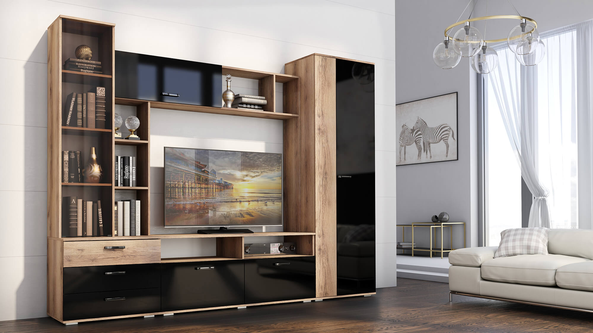 Цвет: Дуб делано/Черный глянец