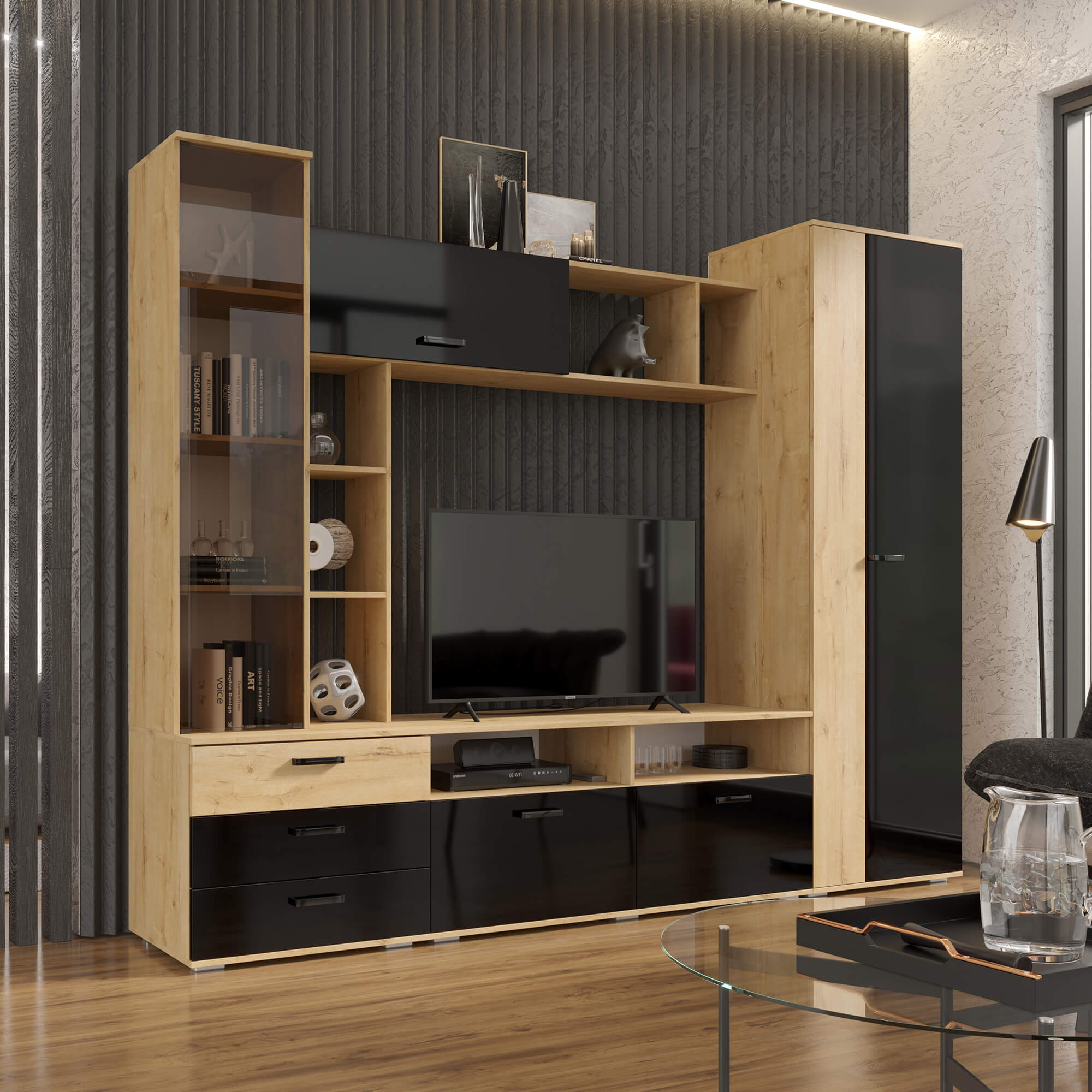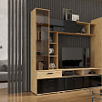 Стенка Крокус не только стильная и современная, но и функциональная гостиная. Здесь отлично смотрится большой телевизор, имеются отделения для хранения аппаратуры, дисков, журналов, в стеллаже прекрасно разместятся любимые книги, а на полках есть место декоративным мелочам и фотографиям. Кроме этого, достоинством модели является вместительный шкаф со штангой и полкой для одежды.