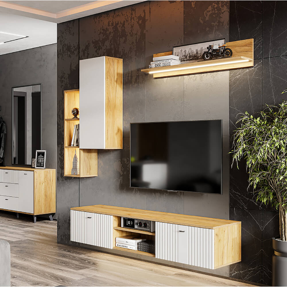 1. Тумба ТВ Милан со створками и нишей 1601x368x418 мм