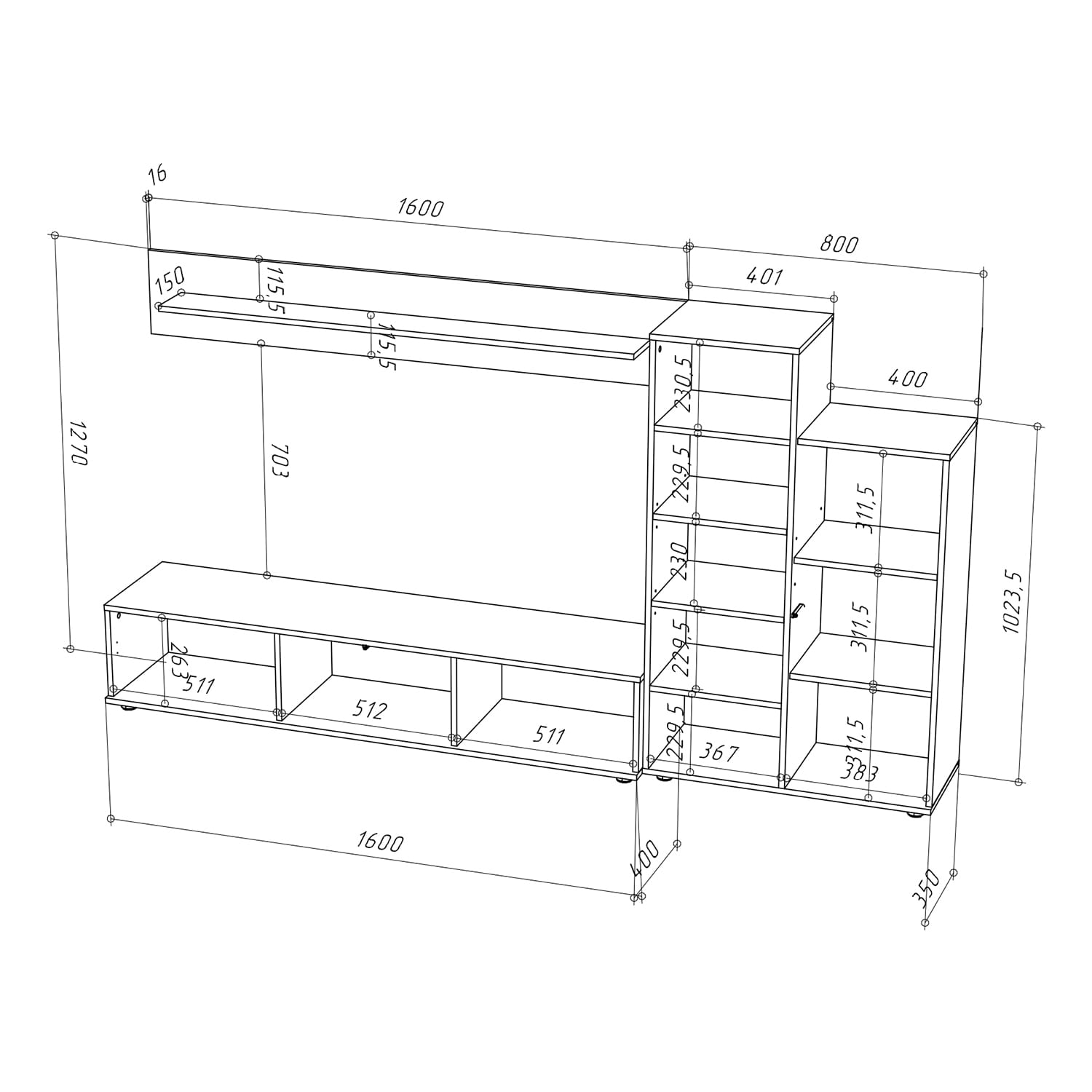 1600x400x1270 мм