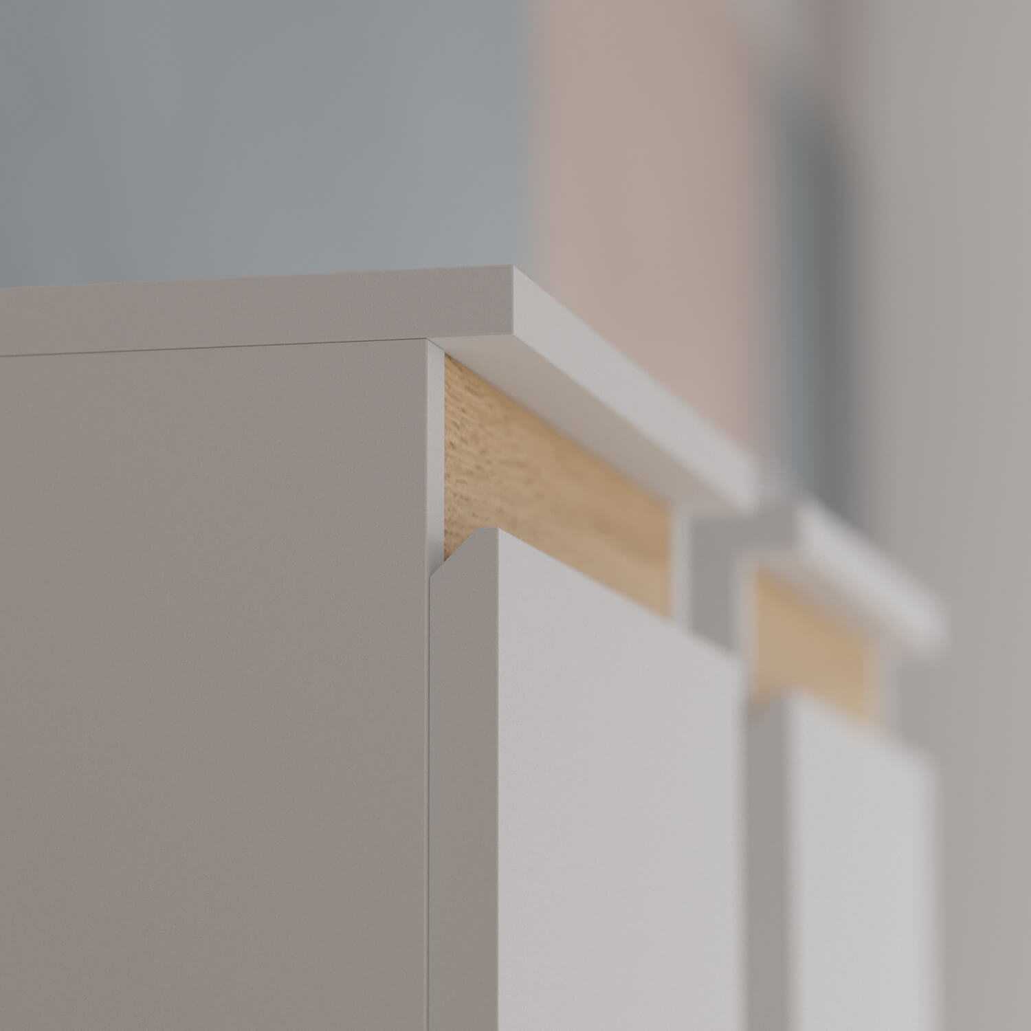 Гармоничное сочетание матового белого цвета с теплым древесным рисунком создает атмосферу уюта и простора.