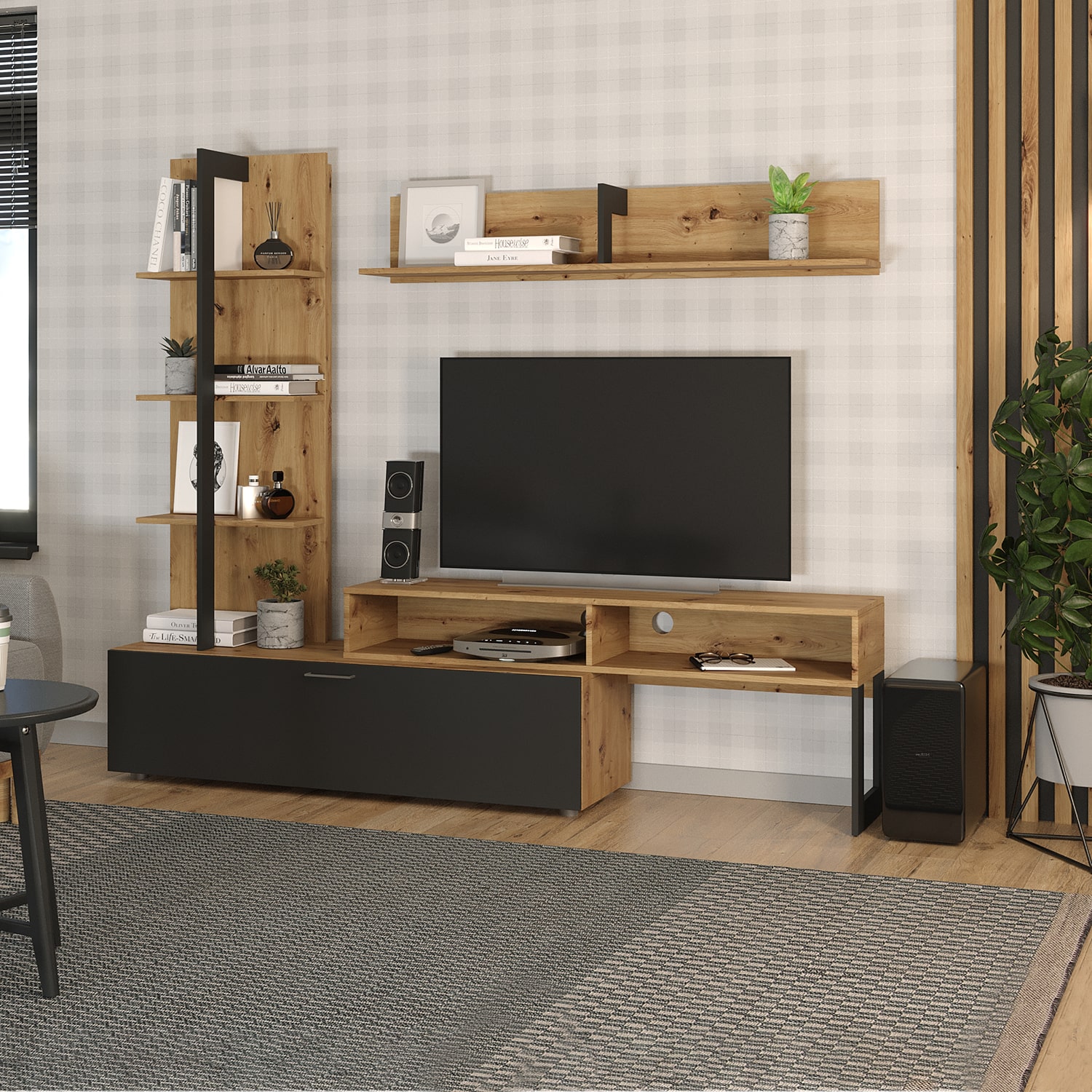 Гостиная НК-мебель JUNO – это стильный и функциональный набор мебели для гостиной, выполненный в стиле лофт. Цвет Дуб Артизан/Черный придает изделию особый шарм и позволяет гармонично вписаться в любой интерьер.